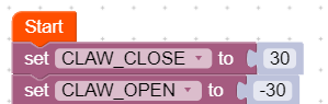 Start by defining two constants: the servo claw open and close positions. Trial and error will have to be used to find the correct settings for your rover.