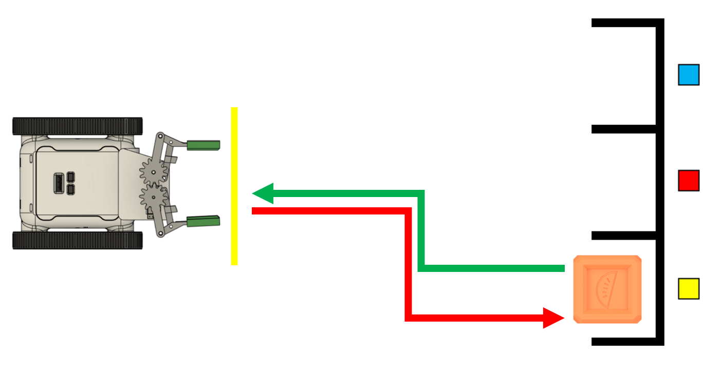 The initial activity can be to have an indicator line on the ground using tape, which the robot starts behind. The Meloncube can be placed 30cm in front of this line, and students can be tasked to grab the cube and bring it back over the line. Depots can then be introduced to create a warehouse scenario.