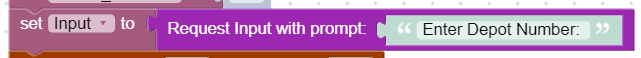 In the main code, we’ll make a variable named ‘Input’, which will request the depot number to deliver the cube.