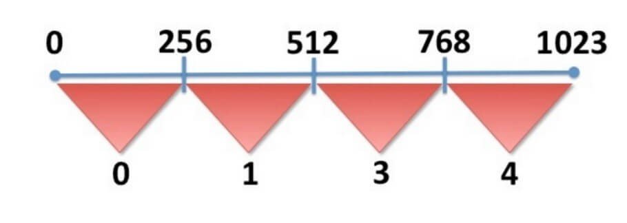 Example of the scale function from [0, 1023] to [0, 4]