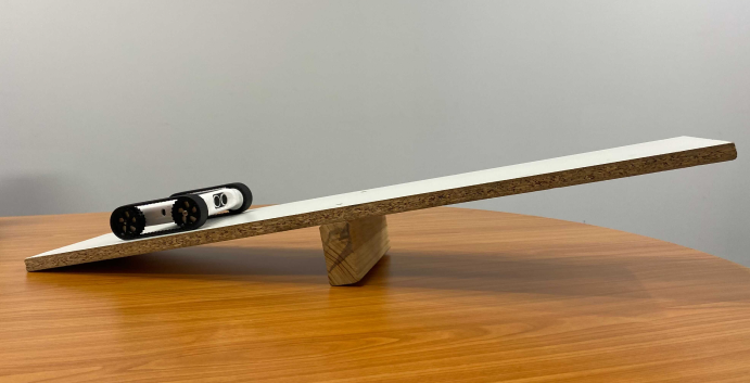 Challenge students to program their rover to always try and stabilise itself. When complete, the rover will always turn and drive upwards on any tilted surface. Once the surface the robot is driving on is flat, it should stop moving. This means the robot will balance on a seesaw. Students will need to use data from the accelerometer to control the motors based on the orientation of the rover.