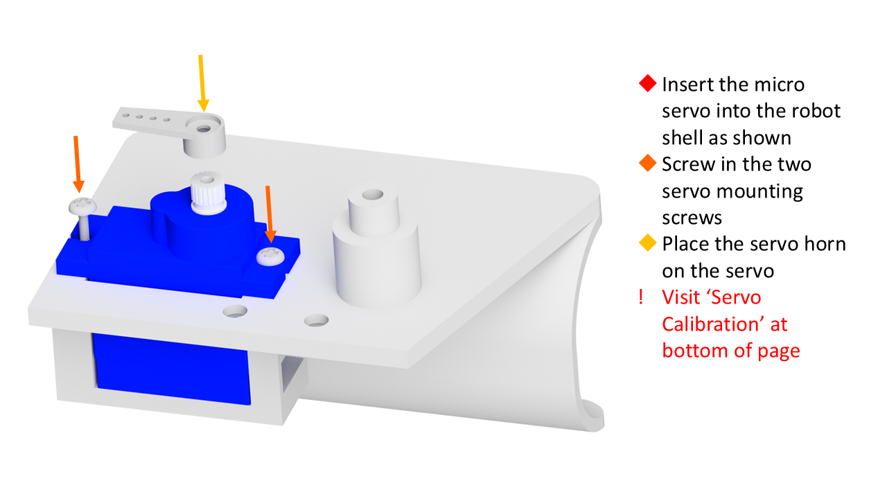 Once the code has been uploaded, without rotating the servo, re-attach the servo horn, so when the servo is at 0, the servo horn is in the same orientation as the image.