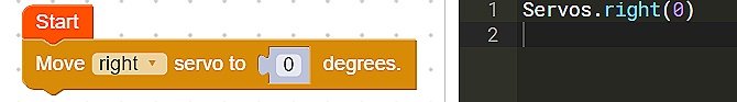 Once step 1 is completed, plug the servo into the right port and run the following code: