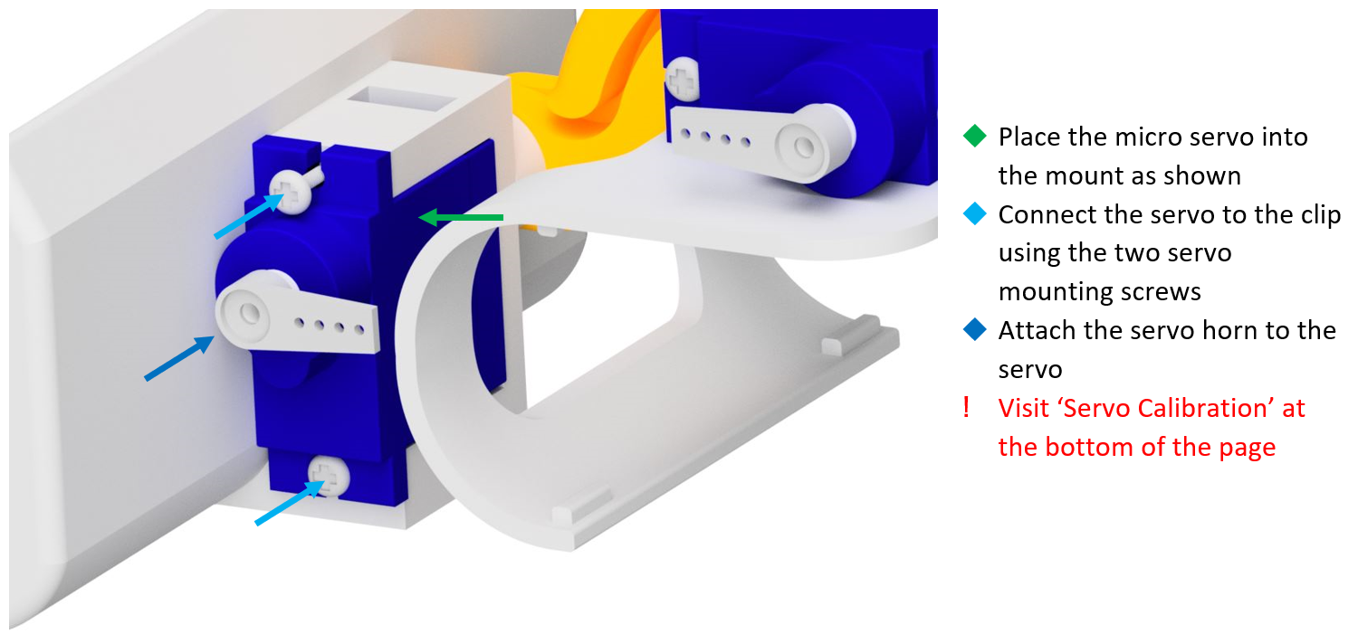 Upload the code and attach the servo horn to the servo so it’s in this position when the servo is at 0.