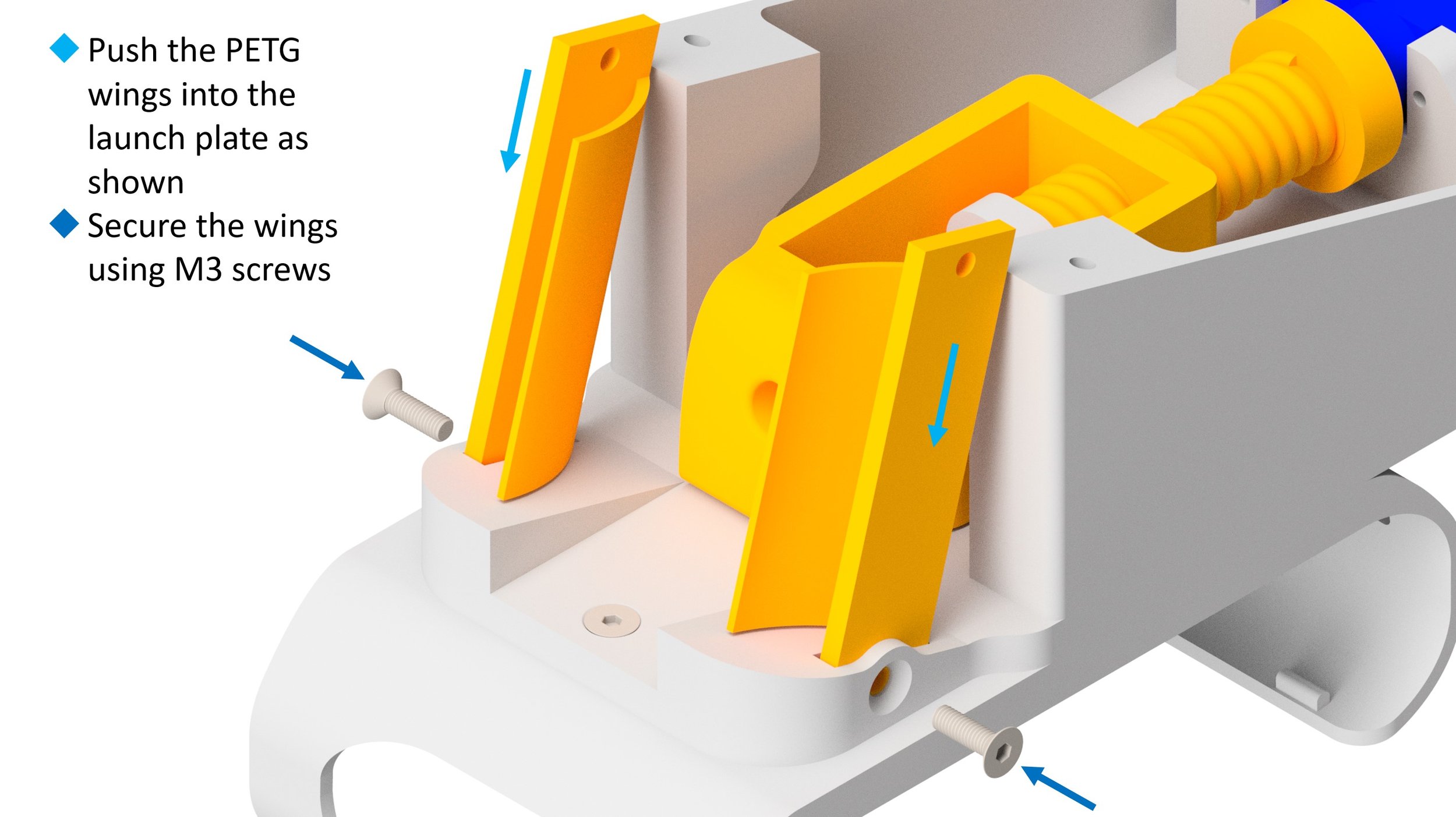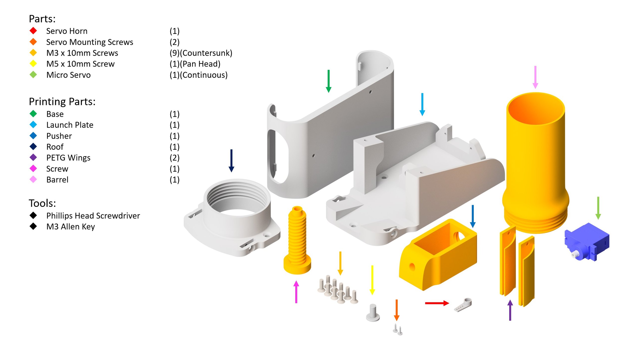 When creating the printed parts, make sure to print the wings using PETG. These parts need to be flexible in order to shoot ping pong balls.