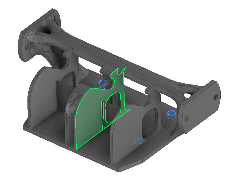To greatly optimise on mass and strength (as well as aesthetics), generative design was used to create the frame holding the fans. This is the part that undergoes the most force on the rover, so it has to be very strong, but still must be made as light as possible. Generative design is a technique where a generative model (sort of like an AI), creates a part given a set of prompts and conditions. They result in organic-looking objects like the part we made below: