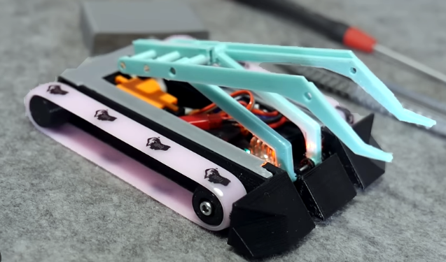 The point of the silicone wheels is defeated if we simply have them free-rolling. That’s why the next feature of the sumo flipper is the use of clutch bearings. Clutch bearings are a type of roller bearing that spins freely in one direction, but locks up tight when rotating the other direction. The first version was a print-in-place experiment to gauge whether the clutch bearing theory would actually work. Some tests were conducted and the print worked much better than expected, however it wore out quickly.