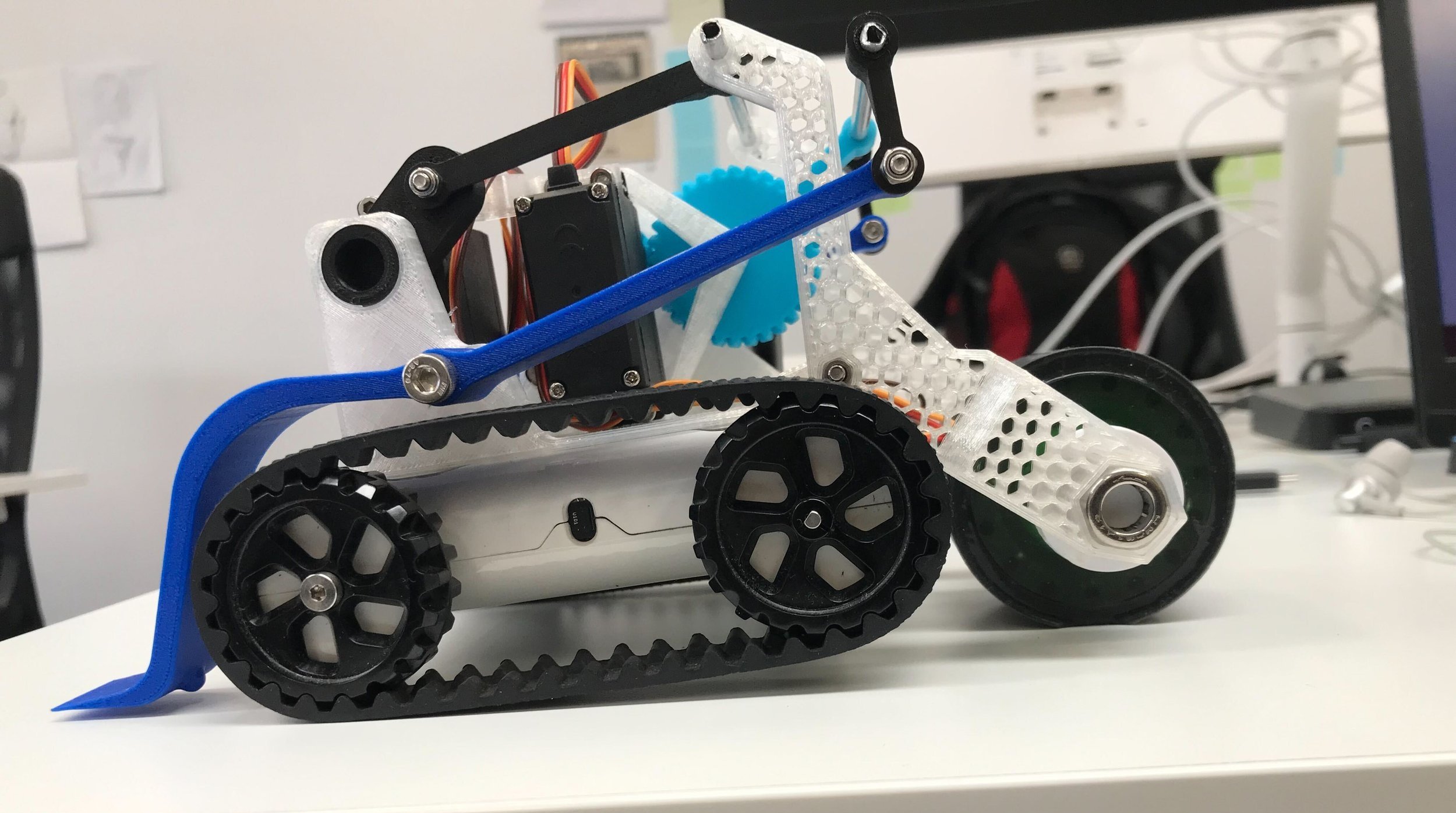 This design blog is a little different to the others in the sense that there were no largely different iterations. In this design, the progression was the addition and refinement of unique features along the way. Here, I will take you through numerous features of the sumo attachment and why I designed them this way. The sumo robot consisted of a flipper at the front to flip incoming opponents, and special traction wheels at the back for defensive purposes.