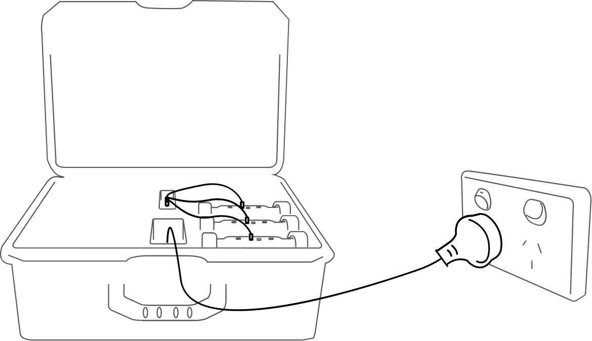 Connect the Rovers to the charging dock with the USB-C cables. Plug the charging dock into any wall outlet. Any Rovers attached to the dock will begin charging.