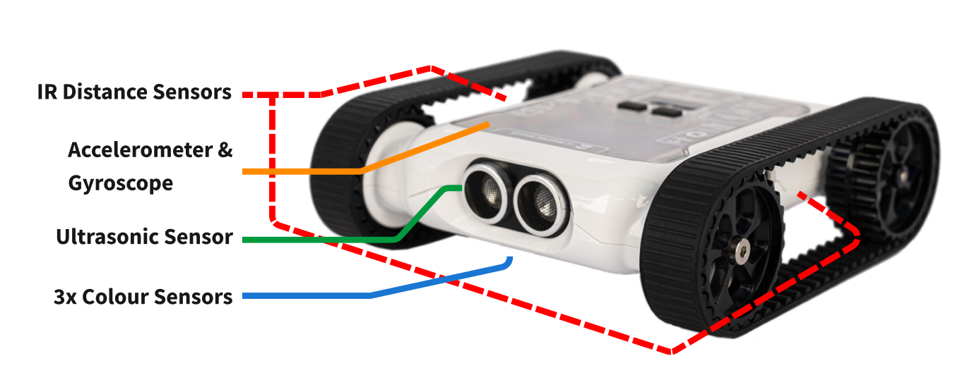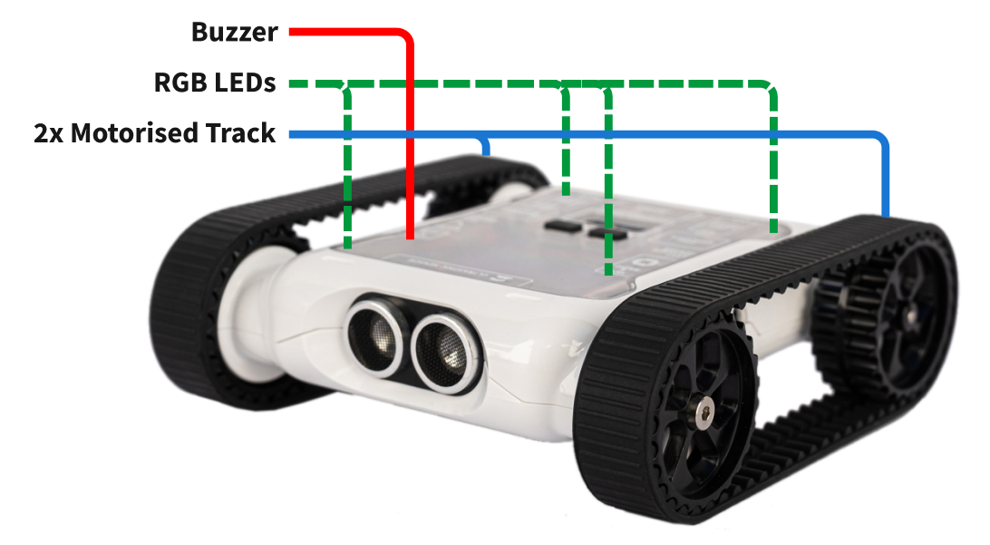The motorised tracks allow you to move the Rover around. You have control over both tracks and can control direction and speed of motors.