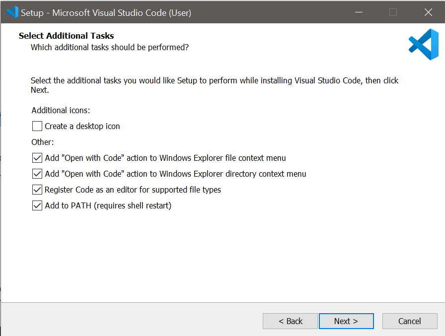 Double-click on the installer once the file has finished downloading, and you should be greeted with the setup window. Keep clicking “Next” until the window shown in the next image appears, ensure that the following checkboxes are ticked, and complete the installation.