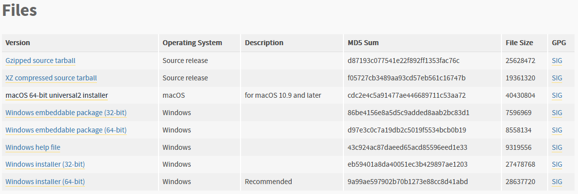 Scroll to the bottom of the next page until you find the “Files” section, as seen in the image below. Then click on the version corresponding to your computer. For this guide, we will be using a 64-bit Windows 10 machine, so we will click the last link.