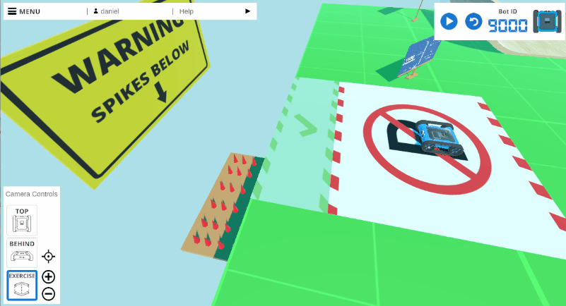Find a way to drive the simulator rover into the green parking lot. Use your colour or ultrasonic sensor to help you find the safe zone. Watch out though, go to far and you’ll fall and get spiked!